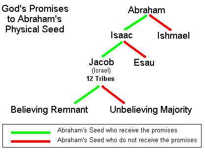 In the bold part above, Paul was making the point that only a portion of Israel received the promises. Contrary to what many think, he was not referring to Gentiles becoming “Israel.” Gentile believers are NOT “Israel.” When he said, “they are not all Israel who are of Israel,” he was saying that not all of those who descended from Jacob (whom God renamed “Israel”) are the true “Israel.” Only a remnant of those descended from Jacob were the true “Israel.” In other words, Paul was limiting “Israel” to ONLY those Jews who listened to “that prophet,” and received the New Covenant. Then he said, “but in Isaac shall thy seed be called.” This is a reference to God’s promise to Abraham. Remember, Abraham had two sons, Ishmael and Isaac. But, both of Abraham’s physical descendants did NOT inherit the promise. The promise proceeded through Isaac only, not Ishmael, even though both were the physical seed of Abraham. Paul used this as an example of the current situation. Israel was divided into two camps, the believers and the unbelievers. Paul was likening the unbelievers of Israel to “Ishmael” and the believing remnant to “Isaac.” Next, he used Jacob and Esau as another example of the same point. Both were physical sons of Isaac, but only Jacob received the promises.